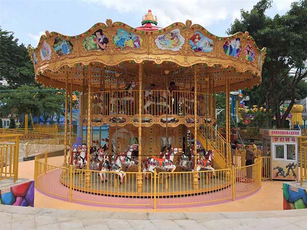 豪華轉(zhuǎn)馬作為游樂設(shè)備行業(yè)的標(biāo)志,一直經(jīng)久不衰,他的趣味性加上豪華轉(zhuǎn)馬外觀的多樣性使得每天乘坐轉(zhuǎn)馬的人不在少數(shù),尤其是小孩子,非常喜歡這類的大型游樂設(shè)備,很多大人把小孩放到轉(zhuǎn)馬上就不管了,以為在上面有轉(zhuǎn)馬經(jīng)營人員看著就可以了,其實不然,像一般的38座豪華轉(zhuǎn)馬來說,坐滿了就有三四十個人,一個游樂設(shè)備經(jīng)營者根本就招呼不過來,更別說龍之盈推出的76座豪華轉(zhuǎn)馬了!