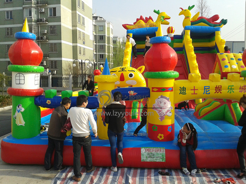 其次,龍之盈游樂設(shè)備廠家提醒,充氣類兒童娛樂設(shè)施,和其他大多數(shù)設(shè)備一樣,有它的使用期限。經(jīng)營者要注意定時(shí)的檢查和保養(yǎng),以免縮短其壽命。比如發(fā)現(xiàn)設(shè)備破損,可在破損處涂上專用膠,將其粘合,幾分鐘后便可正常使用。如果是大面積的破損,則需要專業(yè)的技術(shù)人員來進(jìn)行維修。