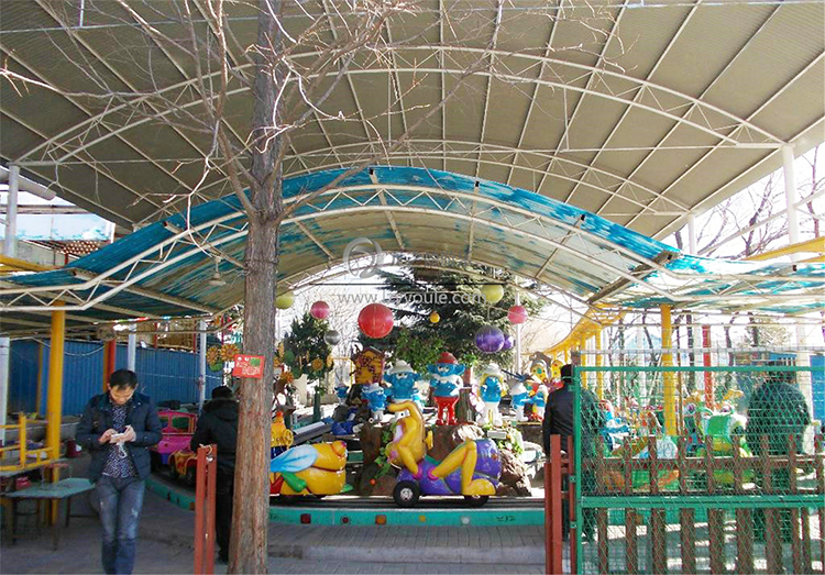 游樂園設備大多都是放置在戶外場所進行經營,但是遇到雨雪這樣的情況稍惡劣的天氣,對設備或多或少的損壞。建議經營游樂園設備的投資者們可以對一下中小型的游樂園設備搭建一個簡易的棚區進行遮蓋,這樣在下雨綿綿的天氣紅中,您的游樂園設備既可以為游客遮雨所用又可以正常運營。